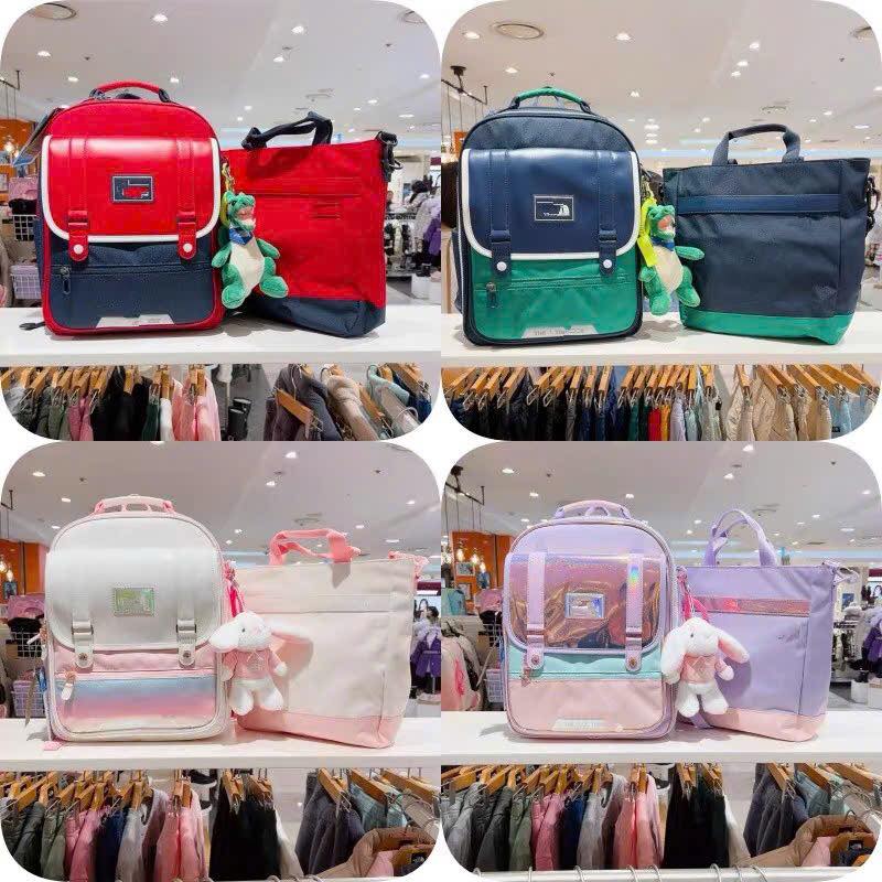 ✨ Set 4 món gồm: Balo + Túi Tote đeo chéo + Bóp viết + Charm gấu.